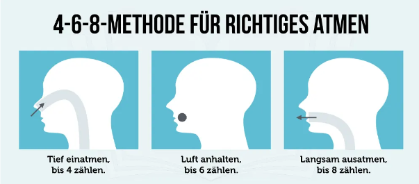Ein anschauliches Beispiel für die Atembeobachtung ist die 4-7-8-Atemtechnik: Dabei atmet man vier Sekunden lang durch die Nase ein, hält den Atem sieben Sekunden lang an und atmet dann acht Sekunden lang durch den Mund aus. Diese einfache Technik kann dazu beitragen, den Geist zu beruhigen und Spannungen abzubauen.