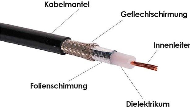 Funktechnik ist eine von vielen Möglichkeiten, Medien zu übertragen. Im Wesentlichen unterscheiden wir Übertragung zwischen typischen metallischen Leitern wie z.B. Koaxialleitern (siehe Abbildung unten), Glasfaserübertragungen und weiteren Übertragungsarten wie z.B. Visible Light Communication (VLC). Eine Funkübertragung hingegen erfolgt über eine Funkstrecke, die sich aus einem Sender und einem Empfänger zusammensetzt.