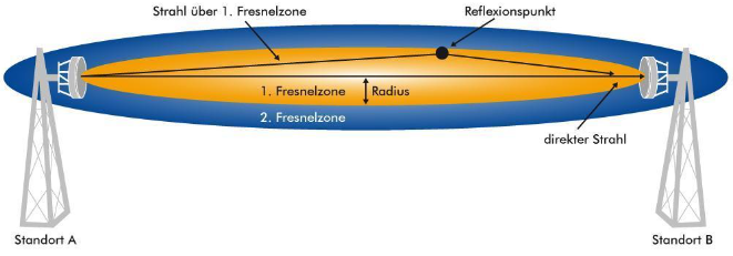- Man spricht von der ersten und zweiten Fresnel-Zone. Die Fresnel-Zone ist der Bereich, der durch die Anordnung der Sender und Empfänger bestimmt wird. In der ersten Fresnel-Zone wird der größte Teil des Wechselstroms übertragen