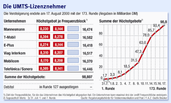 Frequenzen sind ein wertvoller und begehrter Teil des Kommunikationsspektrums. Dies wurde besonders bei den UMTS-Versteigerungsverfahren im Jahr 2000 deutlich, die von den Bundesnetzagenturen durchgeführt wurden. Die dabei erzielten Summen bewegten sich im zweistelligen Milliardenbereich und verdeutlichen den hohen Wert dieser Frequenzen. Viele der Unternehmen, die sich damals Lizenzen sicherten, hatten später aufgrund der enormen Investitionen in die Frequenzen mit finanziellen Schwierigkeiten zu kämpfen. Eine beträchtliche Anzahl von ihnen musste im Laufe der Zeit Konkurs anmelden, da die Kosten für den Erwerb der Frequenzen ihre finanzielle Leistungsfähigkeit überstiegen. Dies zeigt die große Bedeutung und den Wert von Frequenzen in der Kommunikationstechnologie auf und betont gleichzeitig die finanziellen Risiken, die mit dem Streben nach Zugang zu diesem knappen Gut verbunden sind.